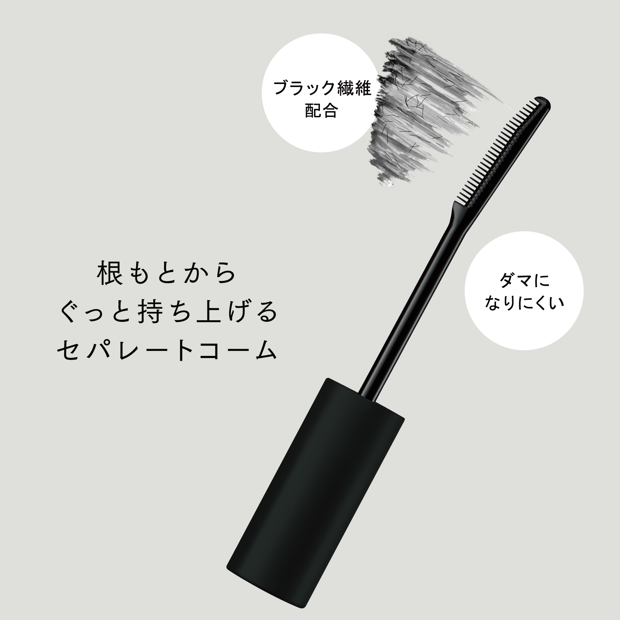- ダマにならず、根もとからぐっと持ちあげるセパレートコーム。